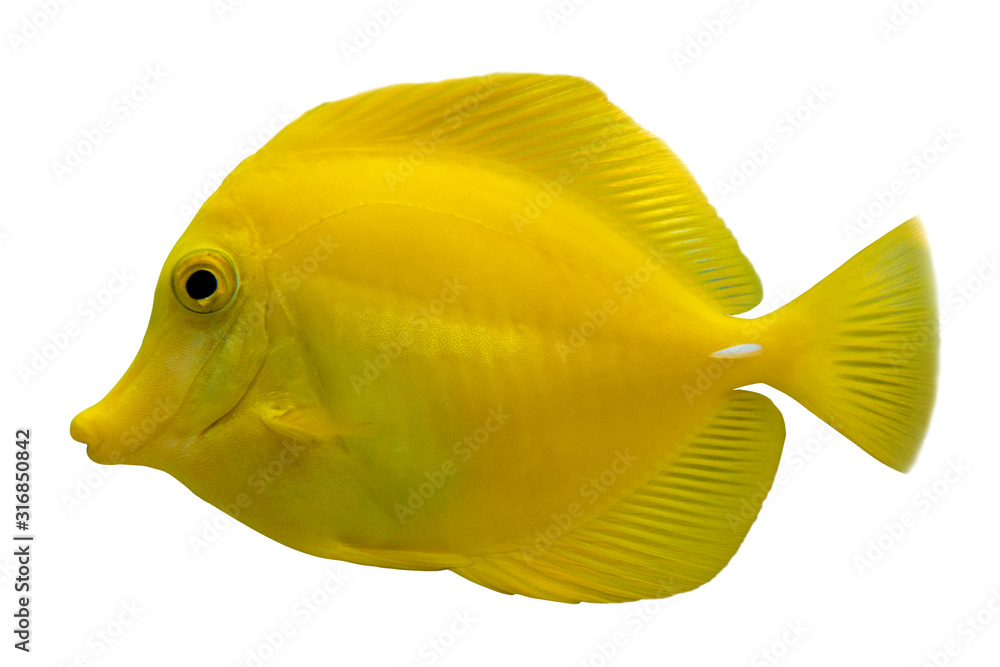 Fototapeta Tropical coral fish Yellow tang (Zebrasoma flavescens) isolated on white backgro