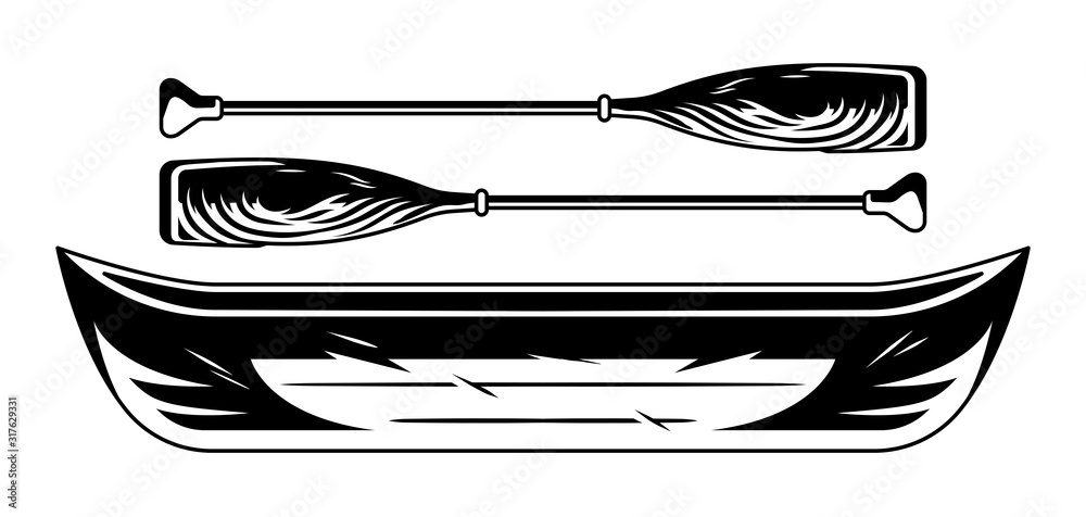 Fototapeta Vintage wooden the boat canoe with couple of oars