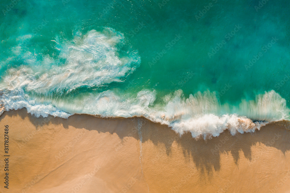 Fototapeta Fantastic drone view azure water ocean golden beach Kelingking Beach Nusa Penida Bali Indonesia