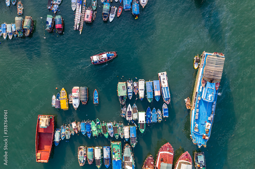Fototapeta Aerial view of Aberdeen Typhoon Shelters and Ap Lei Chau, Hong Kong
