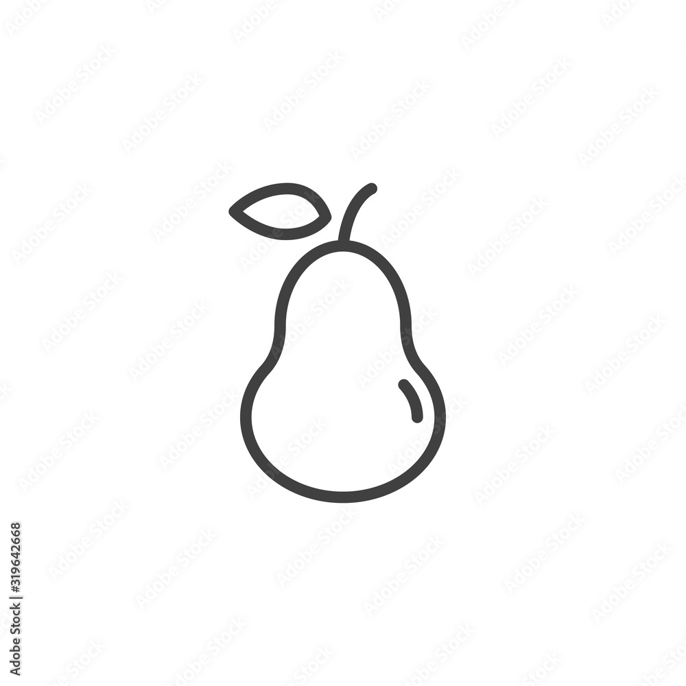 Fototapeta Pear with leaf line icon