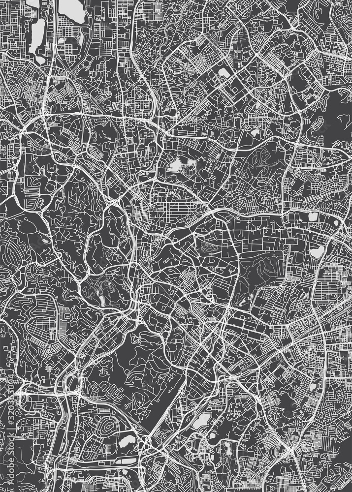 Fototapeta City map Kuala Lumpur, monochrome detailed plan, vector illustration