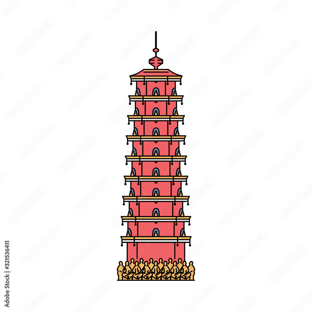 Fototapeta Hong Kong red tower icon - landmark Asian architecture building