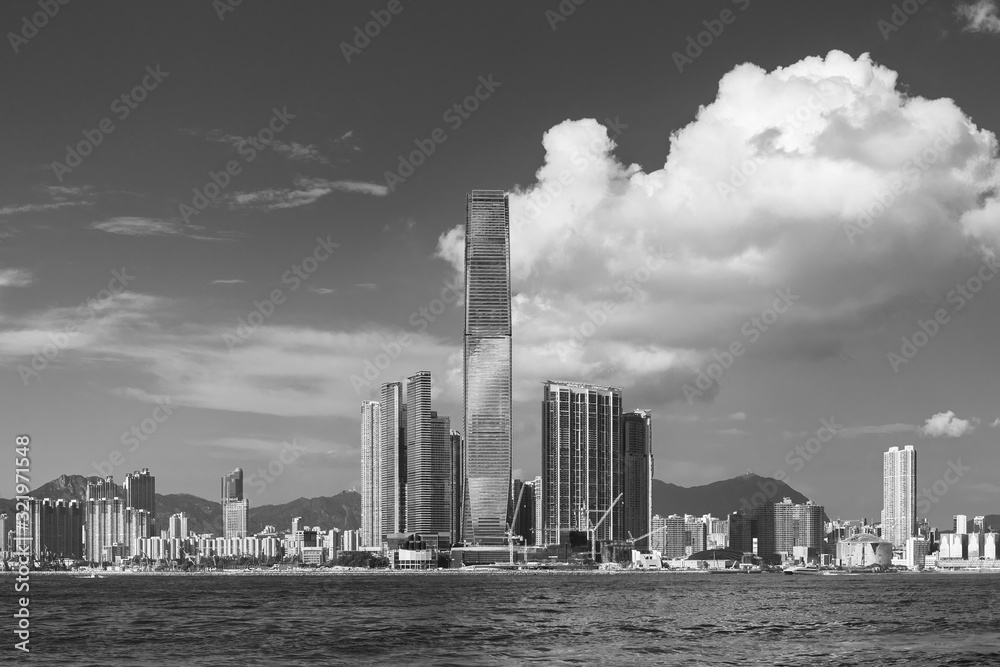 Fototapeta Panorama of Skyline of Victoria harbor of Hong Kong city