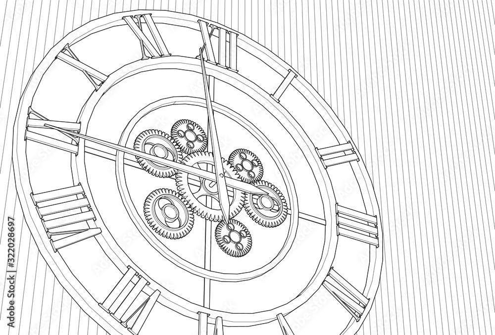 Fototapeta clock, mechanism, sketch, 3d illustration