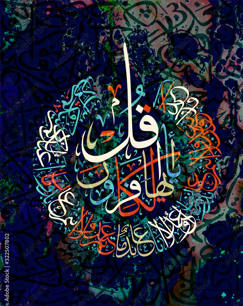 Fototapeta Arabic Calligraphy of chapter Al-Kaafiroon of the Quran, translated as: Say, O disbelievers, I do not worship what you worship, Nor are you worshippers of what I worship