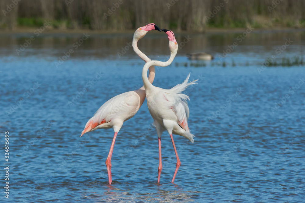 Fototapeta Common flamingo or pink flamingo (Phoenicopterus roseus) in the lagoon of Fuente de Piedra, Malaga