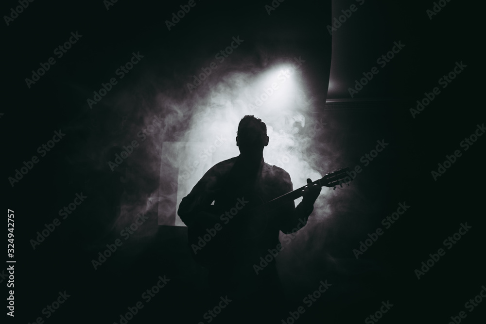 Fototapeta Guitarist guitar player on stage rock acoustic perform