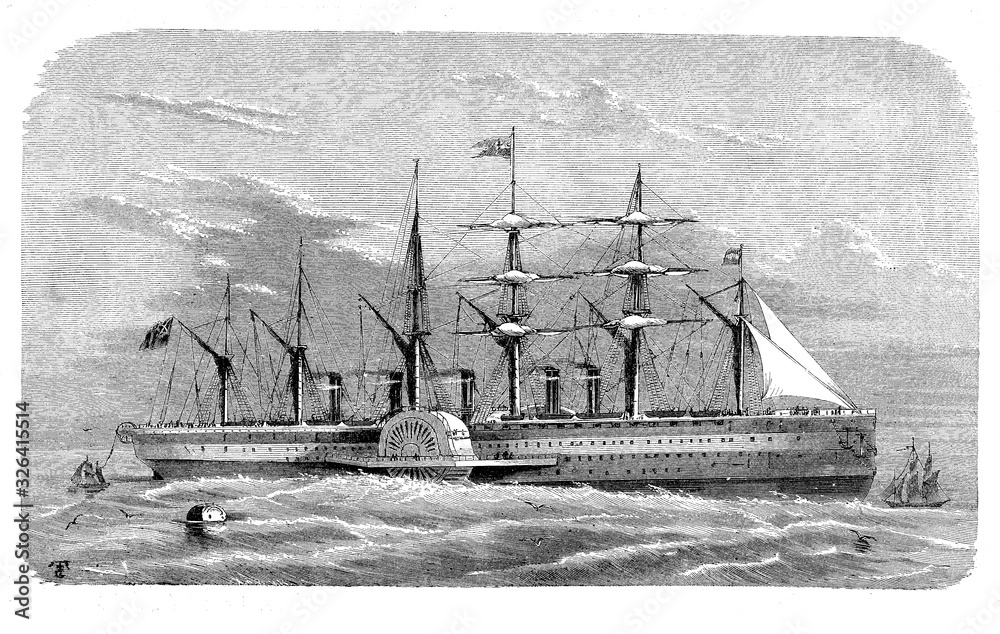 Fototapeta The SS Great Eastern iron sailing steamship laying transoceanic communication ca