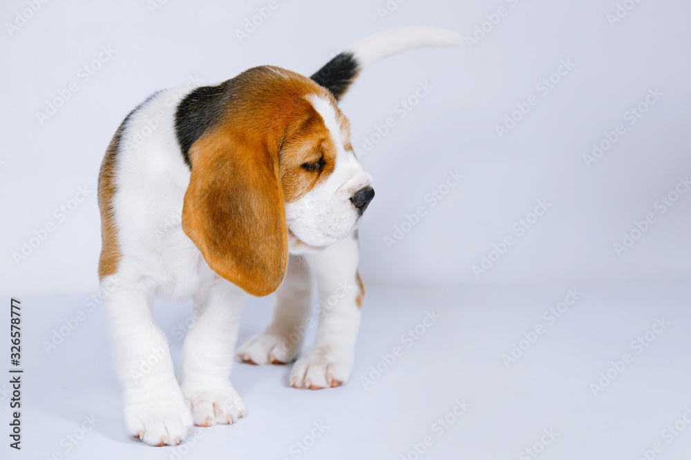 Fototapeta Puppy beagle on a white background.