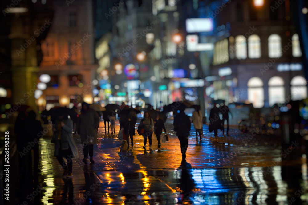Fototapeta pedestrians walking on rainy night in the city vienna