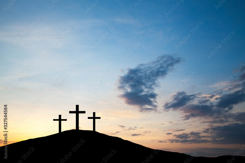 Fototapeta Three cross on the hill, Jesus Christ from the Bible