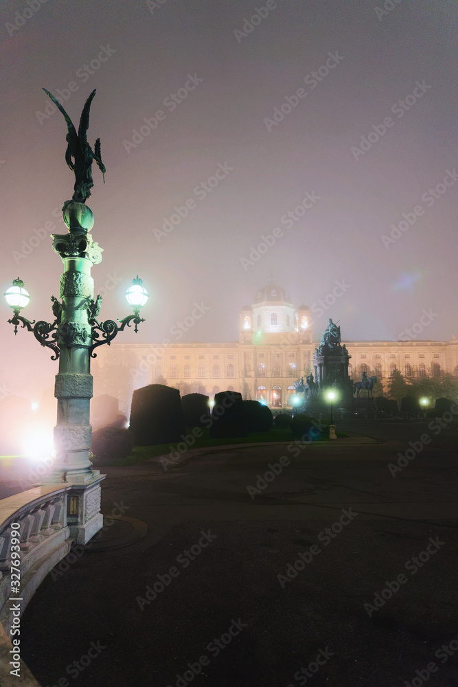 Fototapeta Angel statue and Vienna Museum Quarter fog and evening