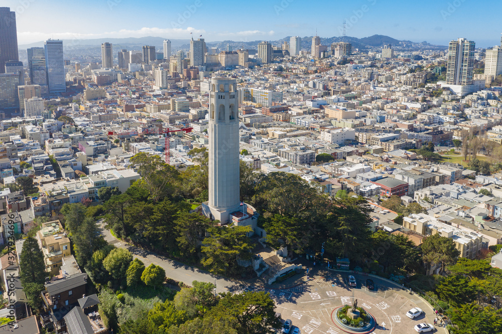 Fototapeta Aerial daytime view of Coit Tower, San Francisco, California, USA