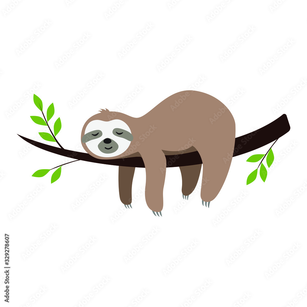 Fototapeta Cute cartoon sloth sleeping on a branch