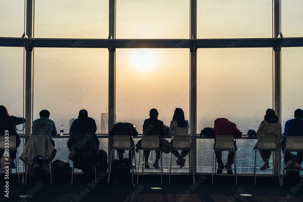 Fototapeta People silhouette inside Observation Deck. Tokyo, Japan.
