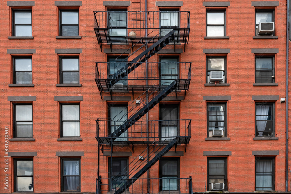 Fototapeta ancient brick buildings with fire stairs in New York City
