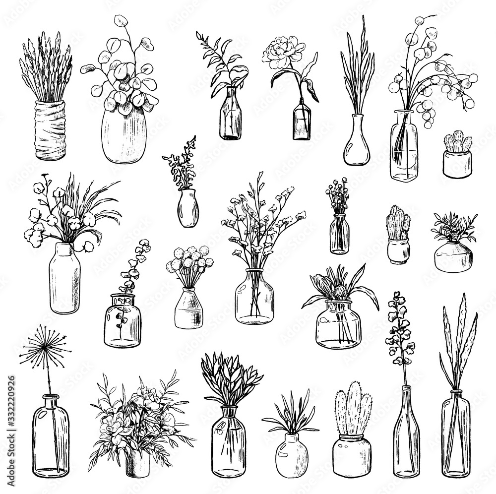 Fototapeta Big collection of varied vases, bottles, and jars of flowers and plants