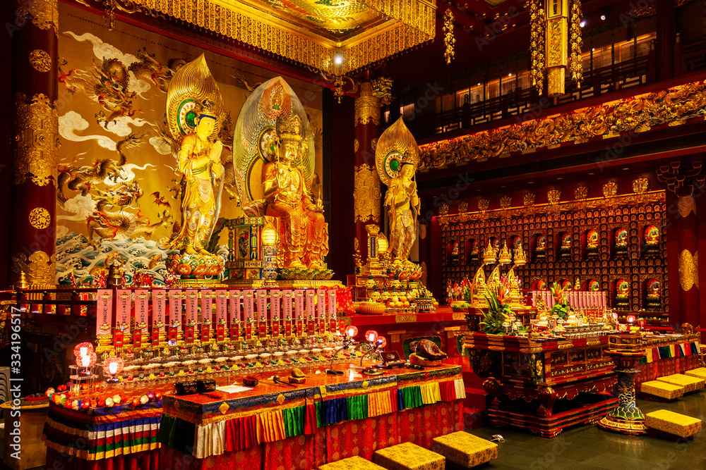 Fototapeta Altar inside the Buddha Tooth Relic Temple in Chinatown District, Singapore
