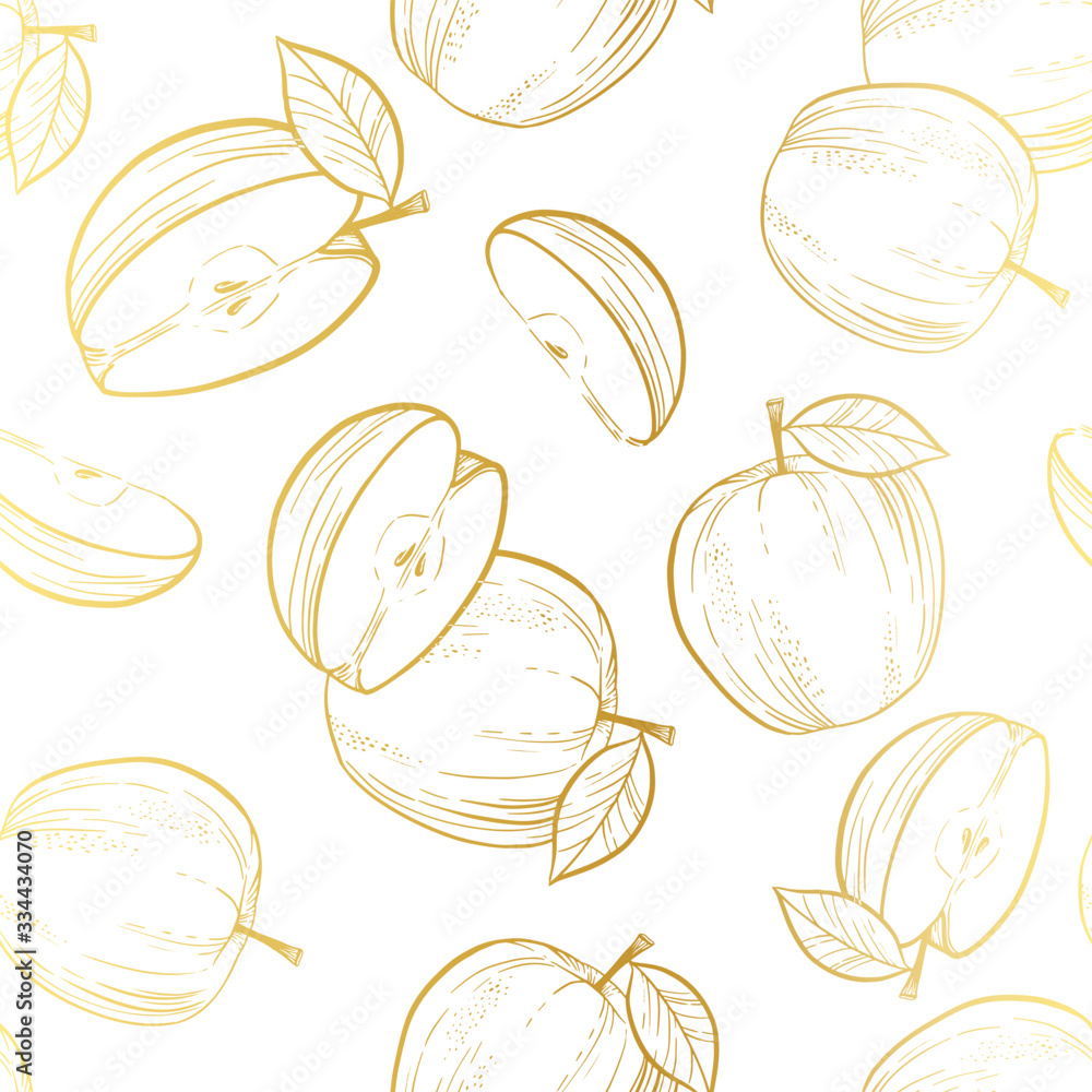 Fototapeta Golden seamless autumn apples with leaves pattern.