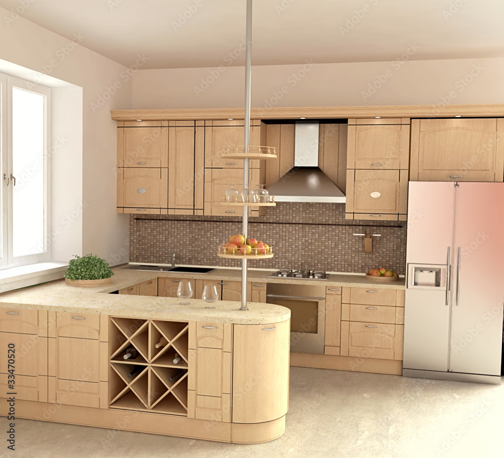 Fototapeta Modern Kitchen Interior ijn 3D