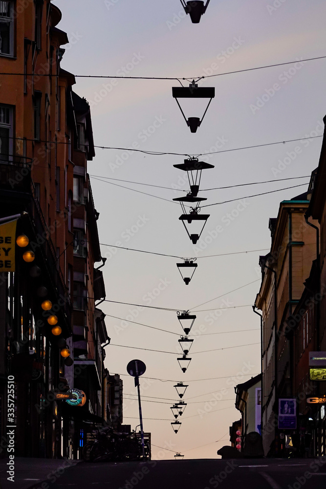 Fototapeta Stockholm, Sweden The hill on Gotgatan on the island of Sodermalm in the early morning