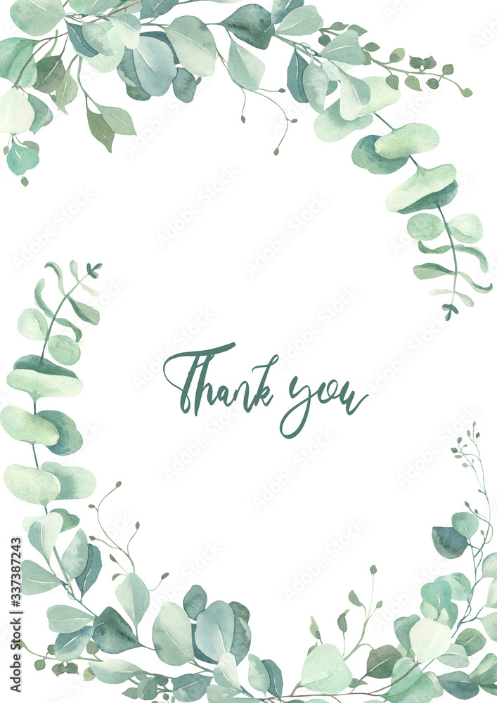 Fototapeta Watercolor hand painted leaves frame