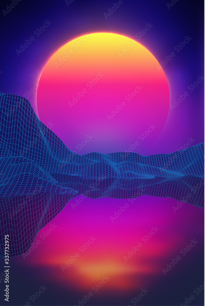 Fototapeta Retro background futuristic landscape 1980s style