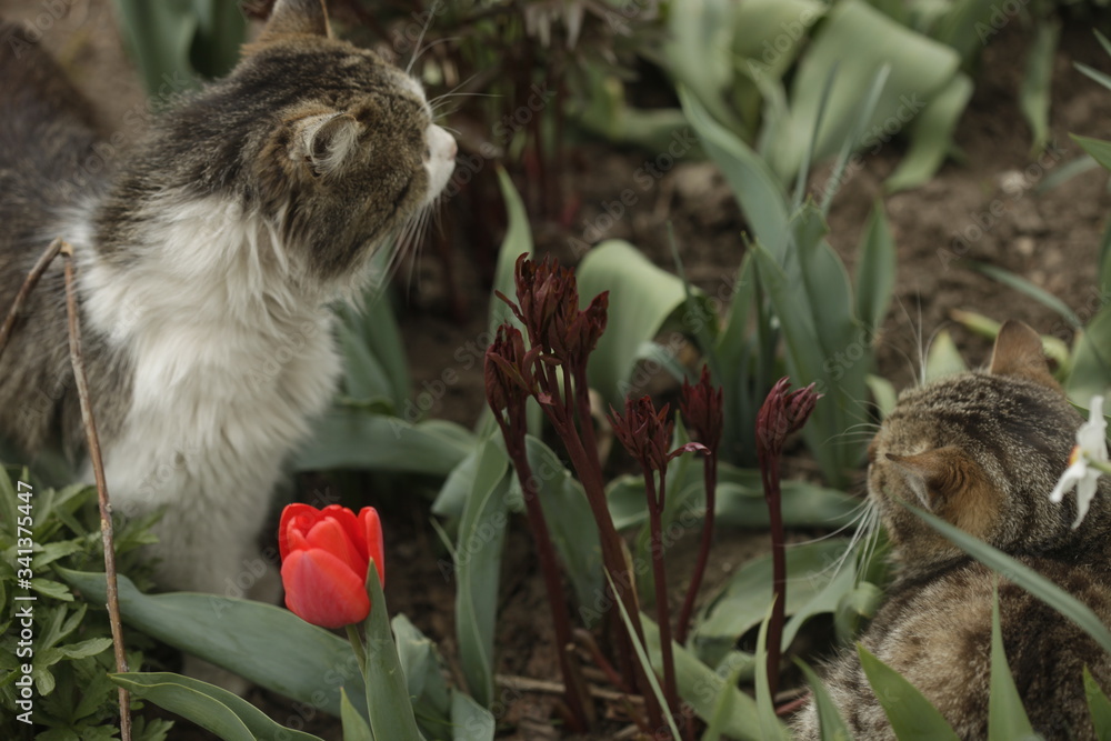 Fototapeta Portrait of fluffy wild cats