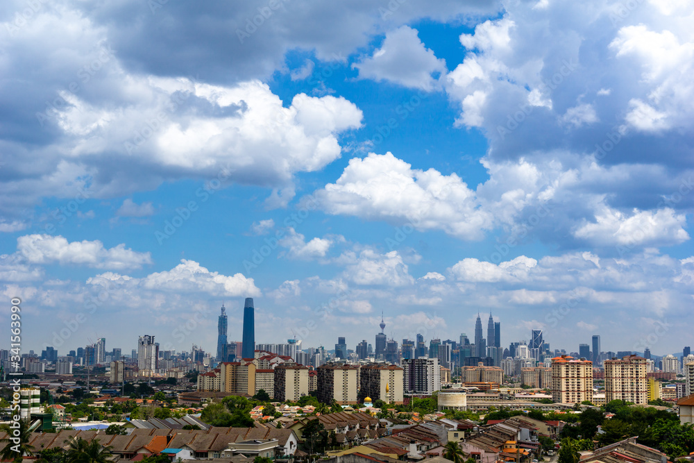 Fototapeta View of monsoon clouds over down town Kuala Lumpur, Malaysia.