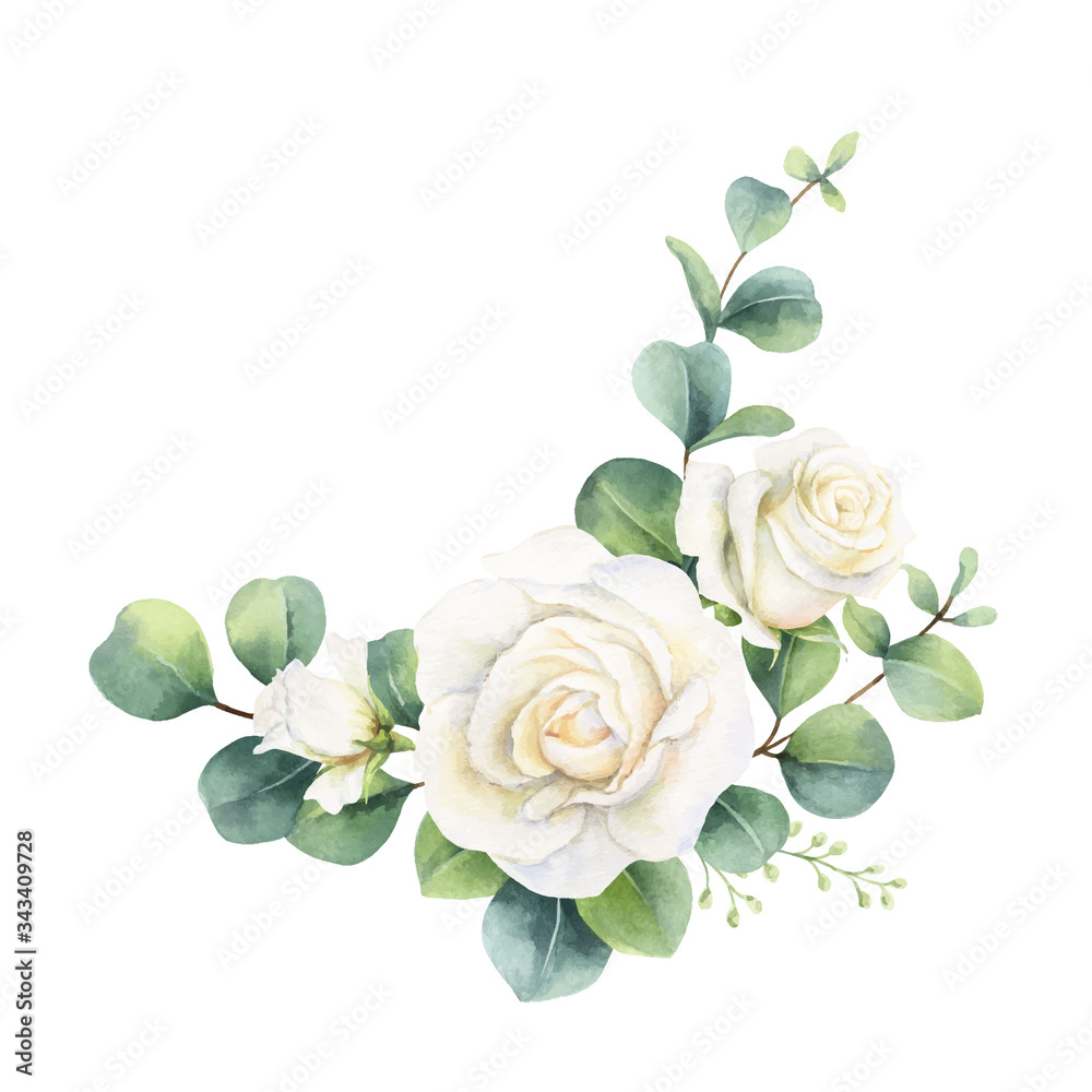 Fototapeta Watercolor vector bouquet with eucalyptus leaves and roses.
