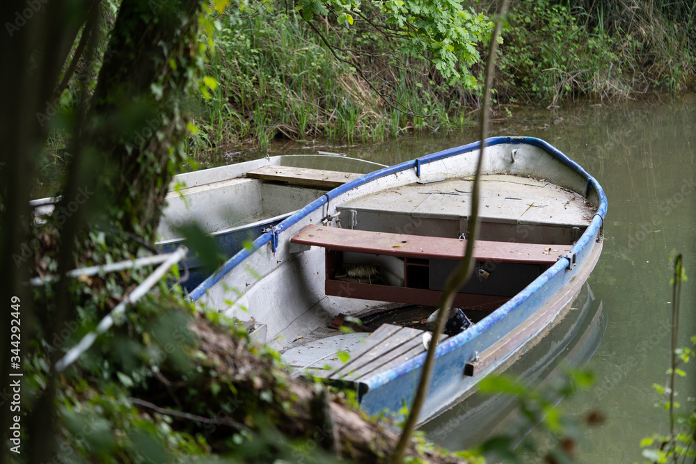 Fototapeta Small fishing boat on the lakeshore.