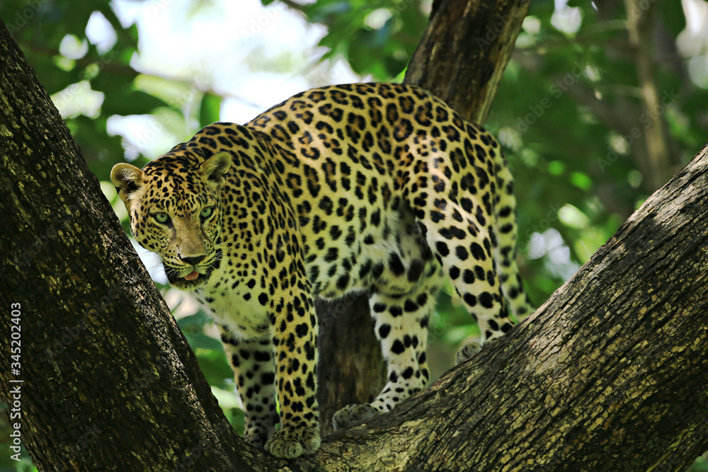 Fototapeta Poses of the leopard resting on a tree in Huai Kha Khaeng Wildlife Sanctuary, Ut