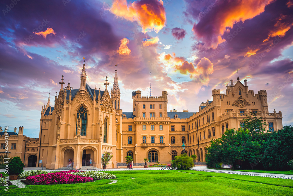 Fototapeta Lednice Chateau with beautiful gardens and parks on sunny summer day