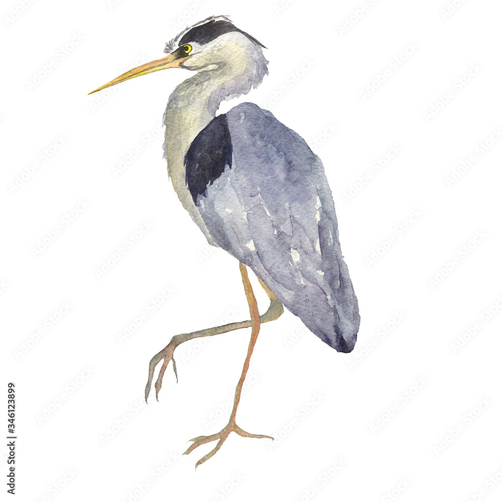 Fototapeta Watercolor heron bird isolated on white background