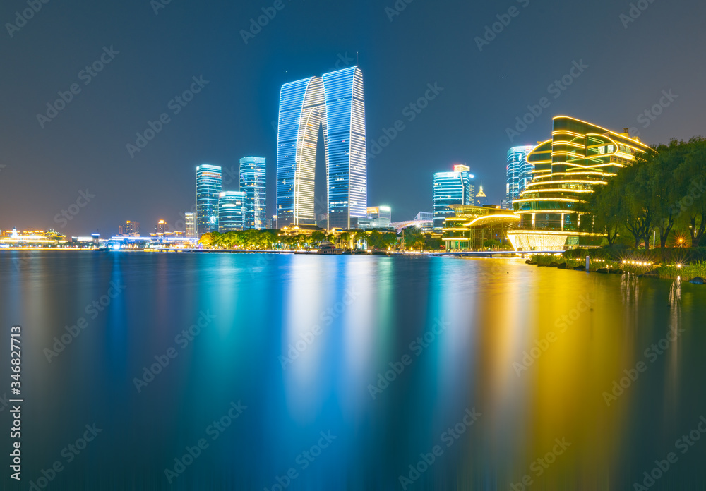 Fototapeta City night view of Suzhou Industrial Park, Jiangsu Province, China