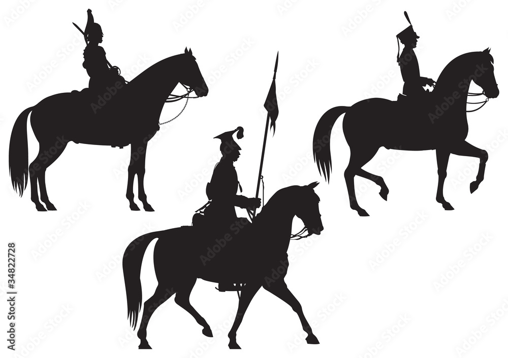 Fototapeta Cavalry Horse riders vector silhouettes part 2