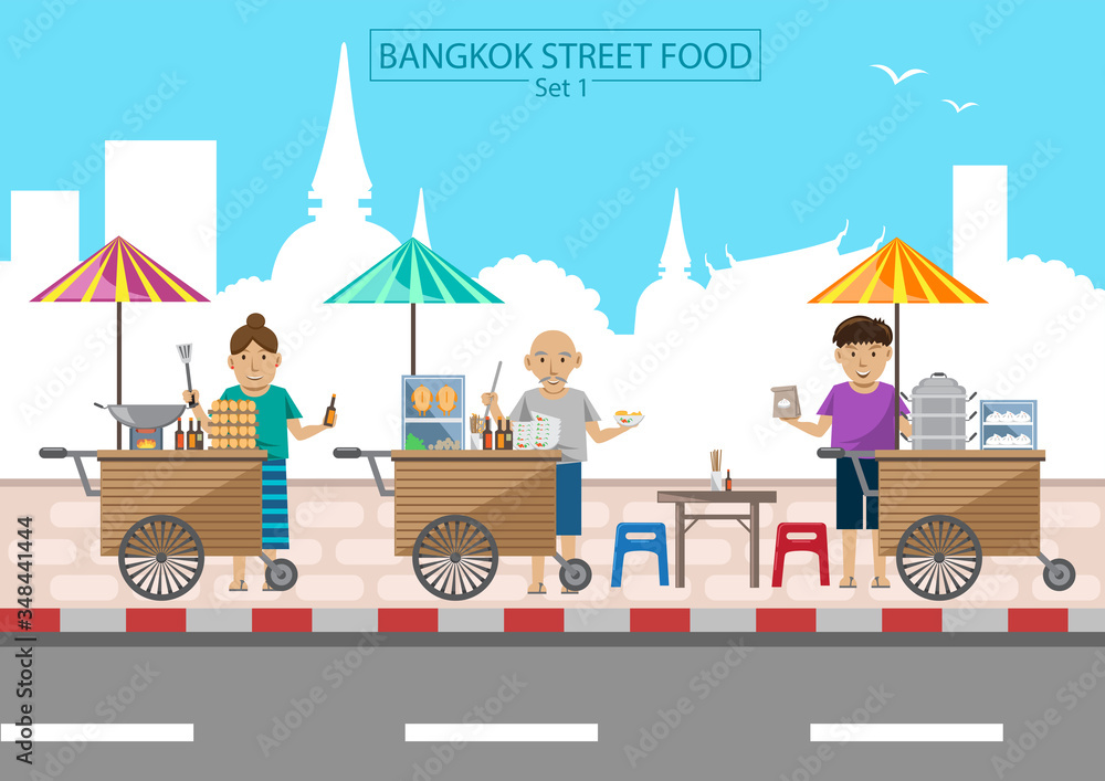 Fototapeta Street food in Bangkok Easy to eat a sample pad thai noodle dimsum
