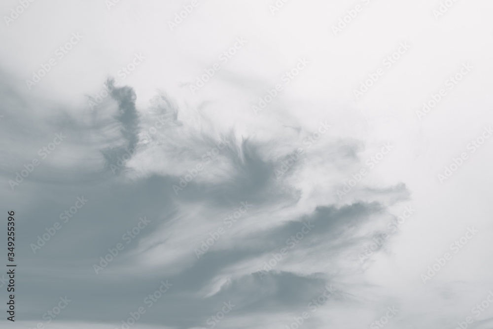 Fototapeta Dramatic gray clouds like paint strokes in the light sky
