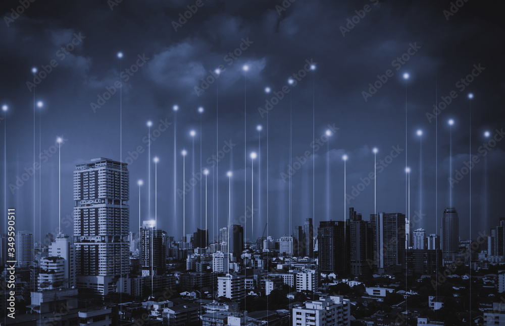 Fototapeta City with wireless network connection concept , abstract communication technology concept