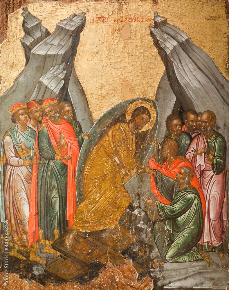 Fototapeta Ancient Greek icon of the Resurrection - Descent into Hell, the Anastasis