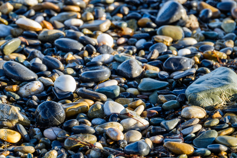 Fototapeta Pebble stones on the beach of Greystones, Ireland.