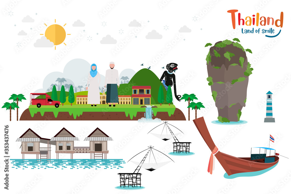 Fototapeta Tropical island. Travel to southern Thailand. Vector illustration