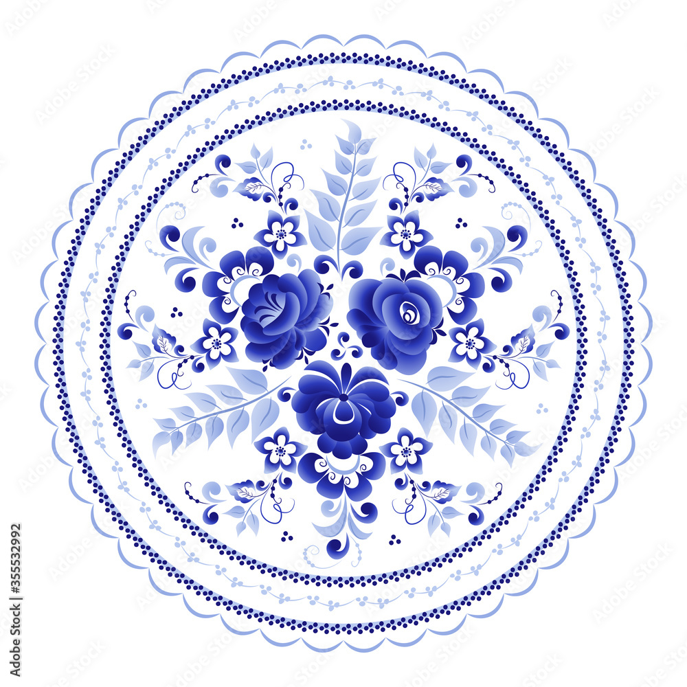 Fototapeta Round plate with a floral pattern of stylized roses is made using the Russian fo