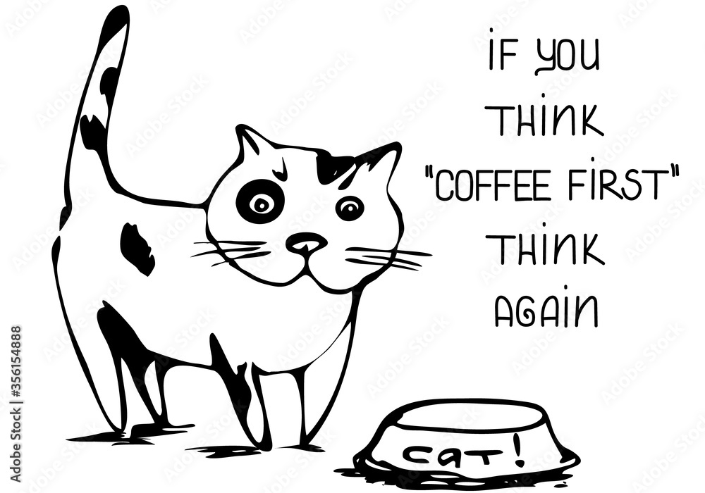 Fototapeta Doodle cat illustration with funny lettering, poster or print for any home decor stuff