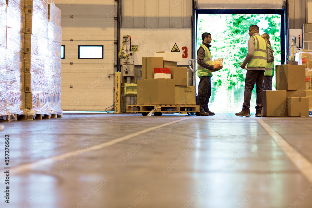 Fototapeta Workers talking in warehouse