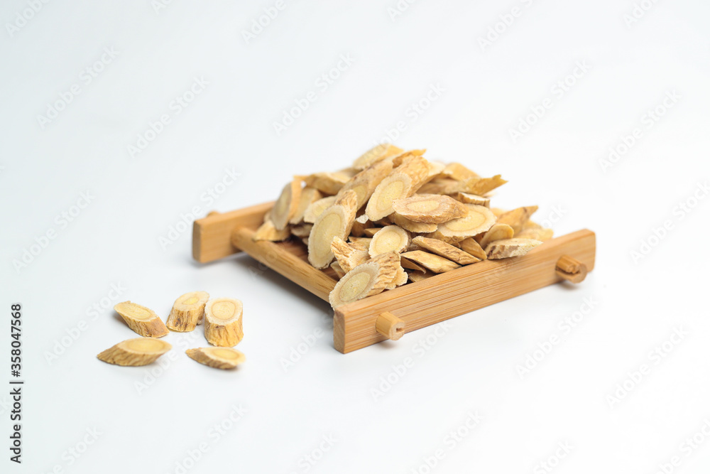 Fototapeta Chinese traditional medicinal herb collection, isolated over white background
