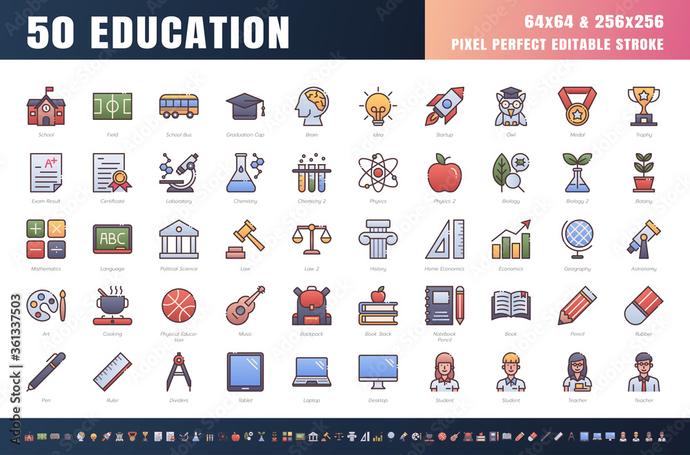 Fototapeta Vector of 50 Education and School Subject