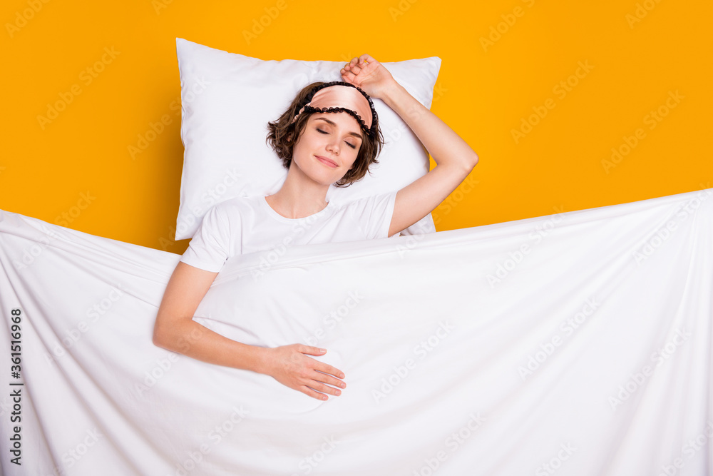 Fototapeta Top view above high angle flat lay flatlay lie concept portrait of nice attracti