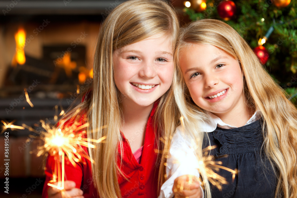 Fototapeta two girls with sparklers